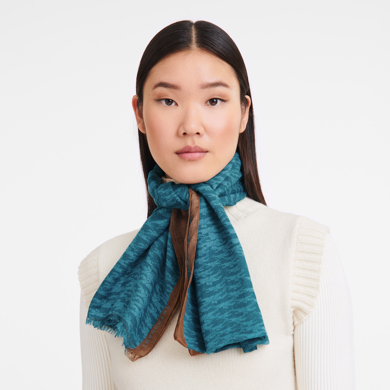 • Longchamp Women's Chevaux Stole Peacock - Horse print | Peacock