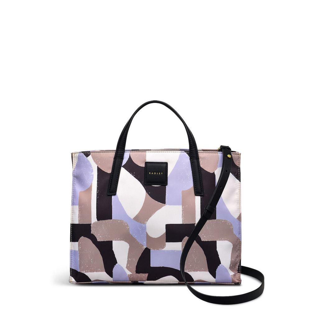 We always choose quality materials to make our handbags. Take the grab bag from our Argyll Street collection. In recycled polyester and water - based PU, it's a lightweight shape that prioritizes sustainability too - and a little fun, thanks to our soft geometric print.