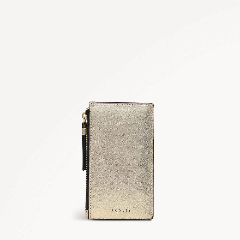 Designed to match the handbag, our Drapers Road coin purse is also made with metallic leather, painted cut edges and handy functionality. With added design details such as asymmetric panelling on the front and our Scottie dog stud.