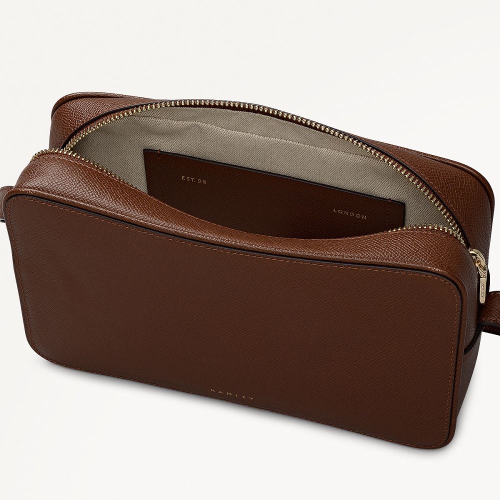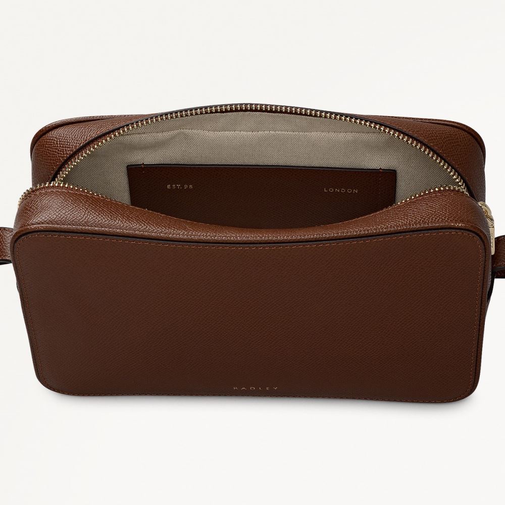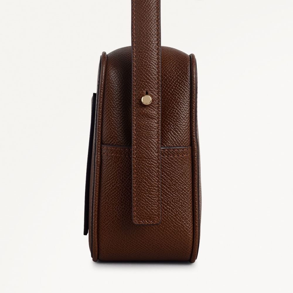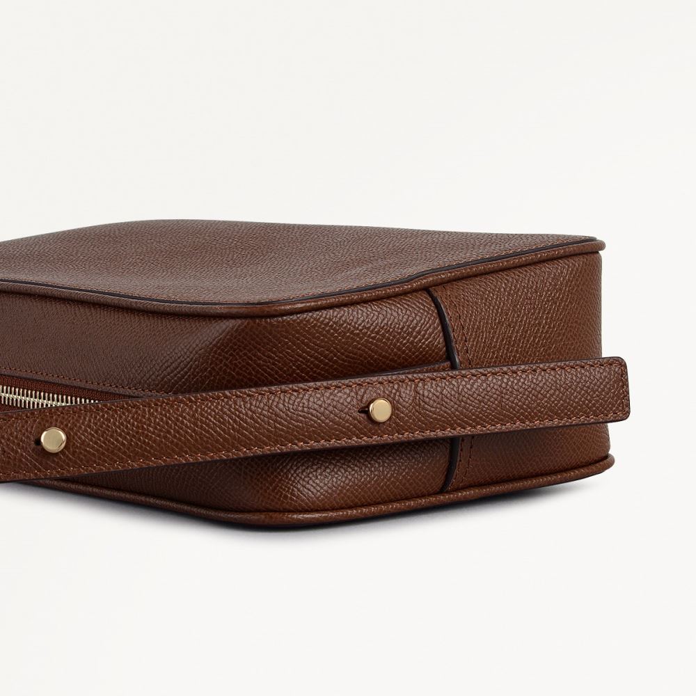 The timeless camera bag is reimagined in the shape of Duchess Close. This slim, boxy day bag is crafted with textured grain - embossed leather and framed with inset piping and painted cut edges. A wardrobe staple.