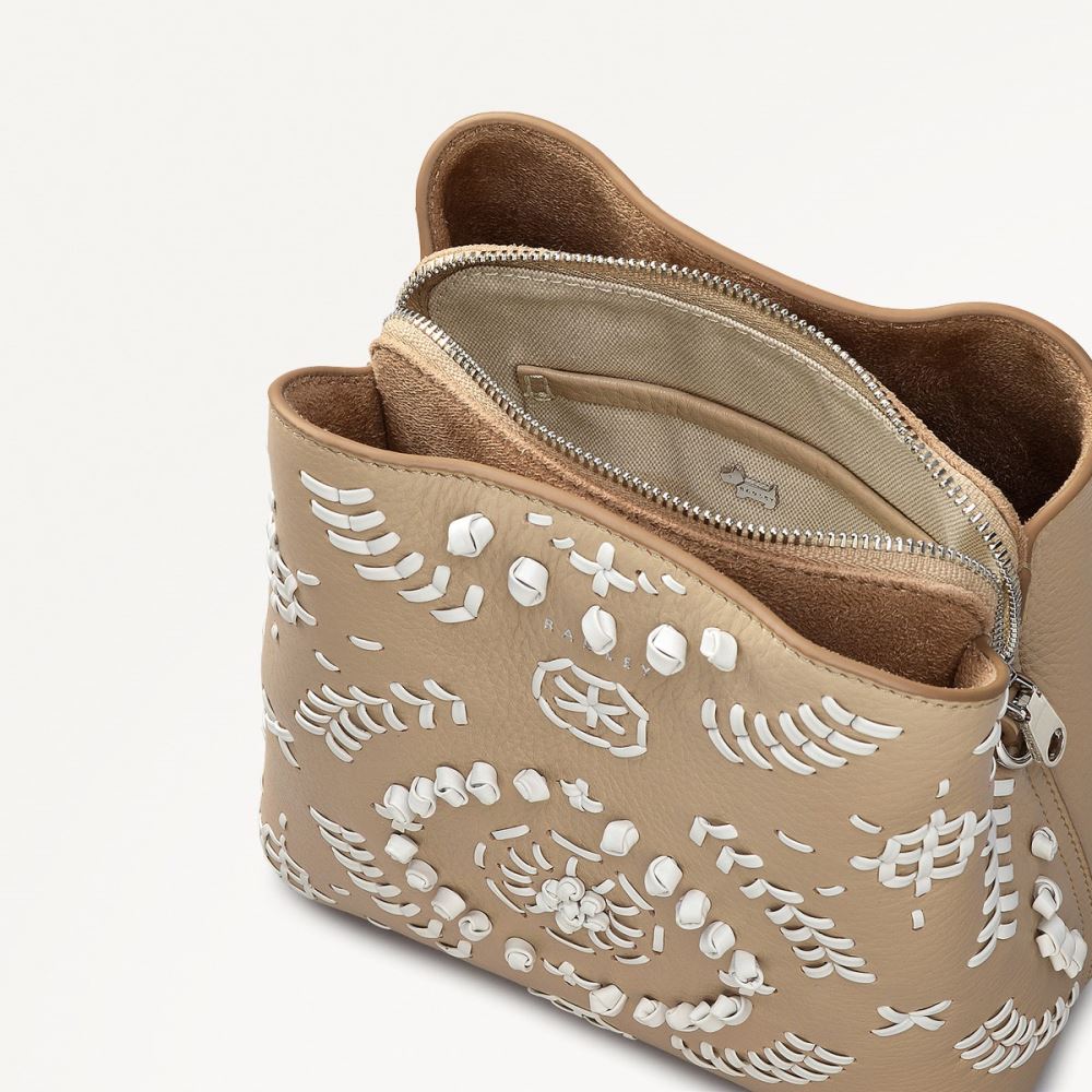 The latest style to join the Dukes Place family, this grained leather small crossbody has the signature three compartments inside, so you always know exactly where your keys are. A crafted edition, this bag features hand - finished knotting and Broderie - inspired leather stitching across the front.