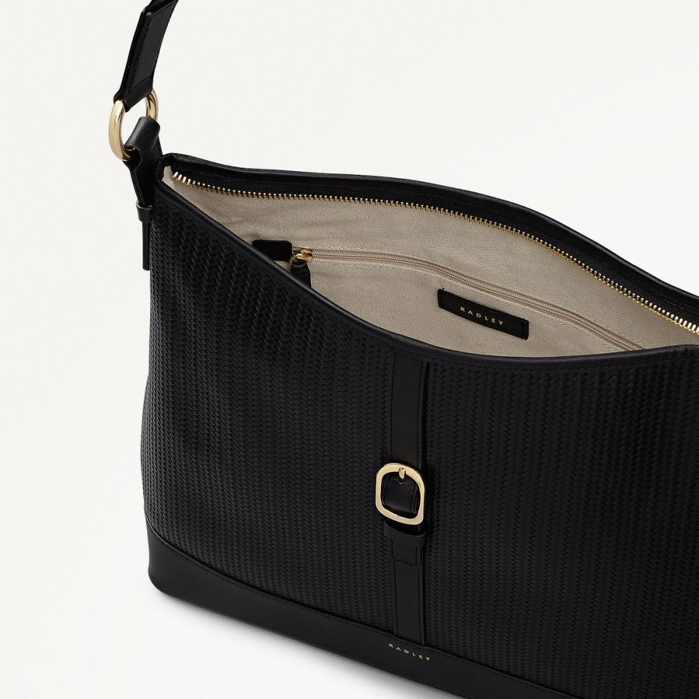 The Ebury Weave collection sees our smart, original design updated with textured weave - embossed leather. The same curved shoulder shape, finished with smooth trims and chunky metal buckle detailing, this bag still offers a strong, heritage feel that gives a nod to equestrian style.