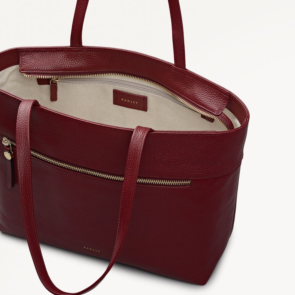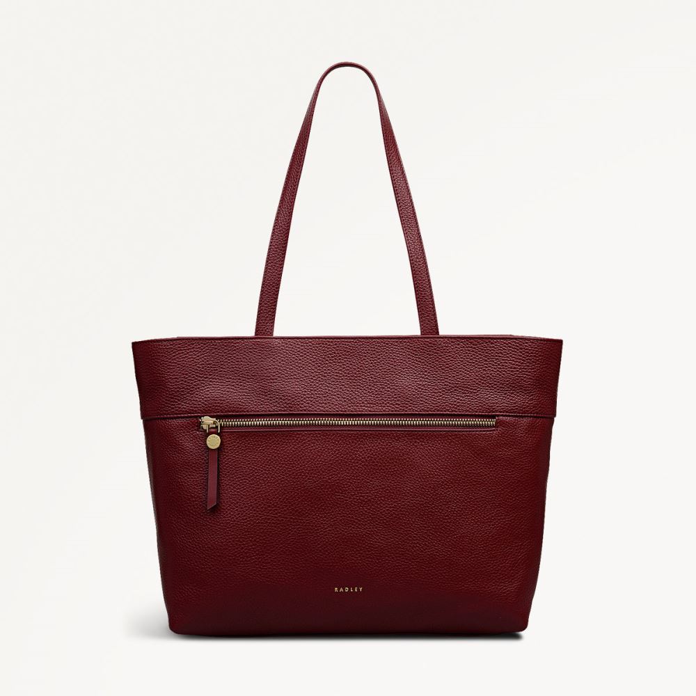 An update on a previous Radley collection, this Fountain Road tote features the same sleek and spacious design. It's crafted in grain leather with an east - west shape, slim handles and set down zipper closure with those signature long leather zip pullers.