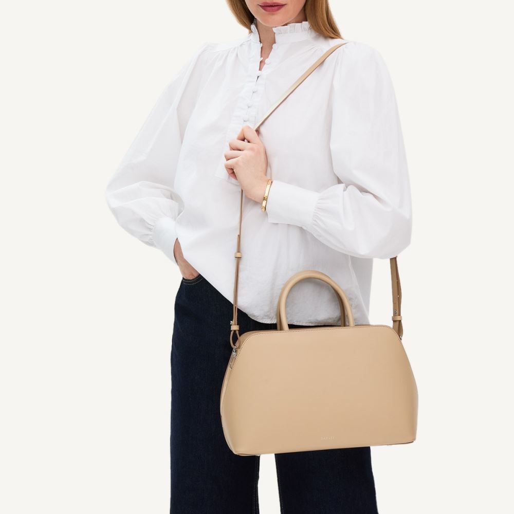 It's an Icon. Our Liverpool Street grab bag is updated with a sleeker silhouette and many of the same signature features as the original (the durable smooth leather, three compartment interior and adjustable strap to name just a few).
