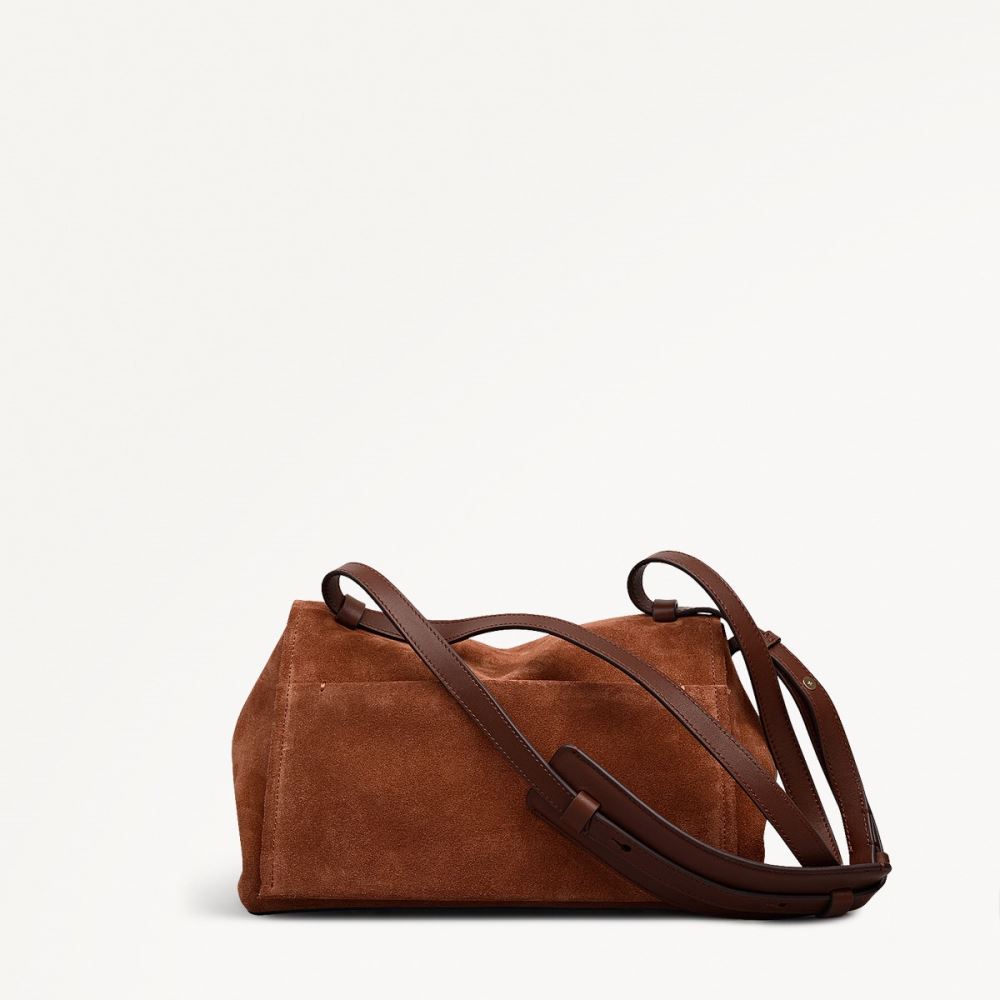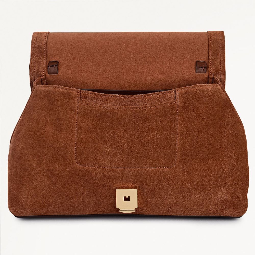 Pairing soft, lightweight Italian suede with origami - inspired folded construction, Mercer Street puts a creative twist on a classic shoulder bag. This modern shape features softly tucked triangular gussets, a leather flap that drapes over the whole silhouette, and an adjustable strap that slides through the loops on the top to transform it into a crossbody.