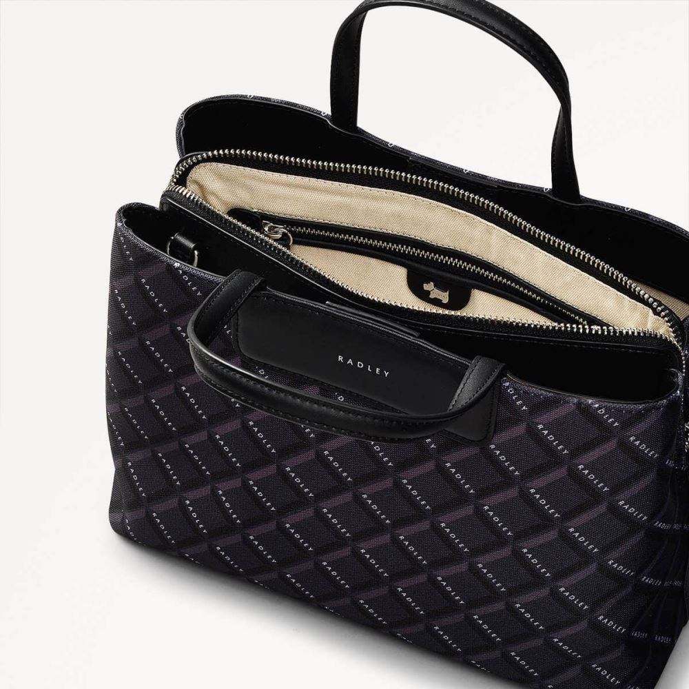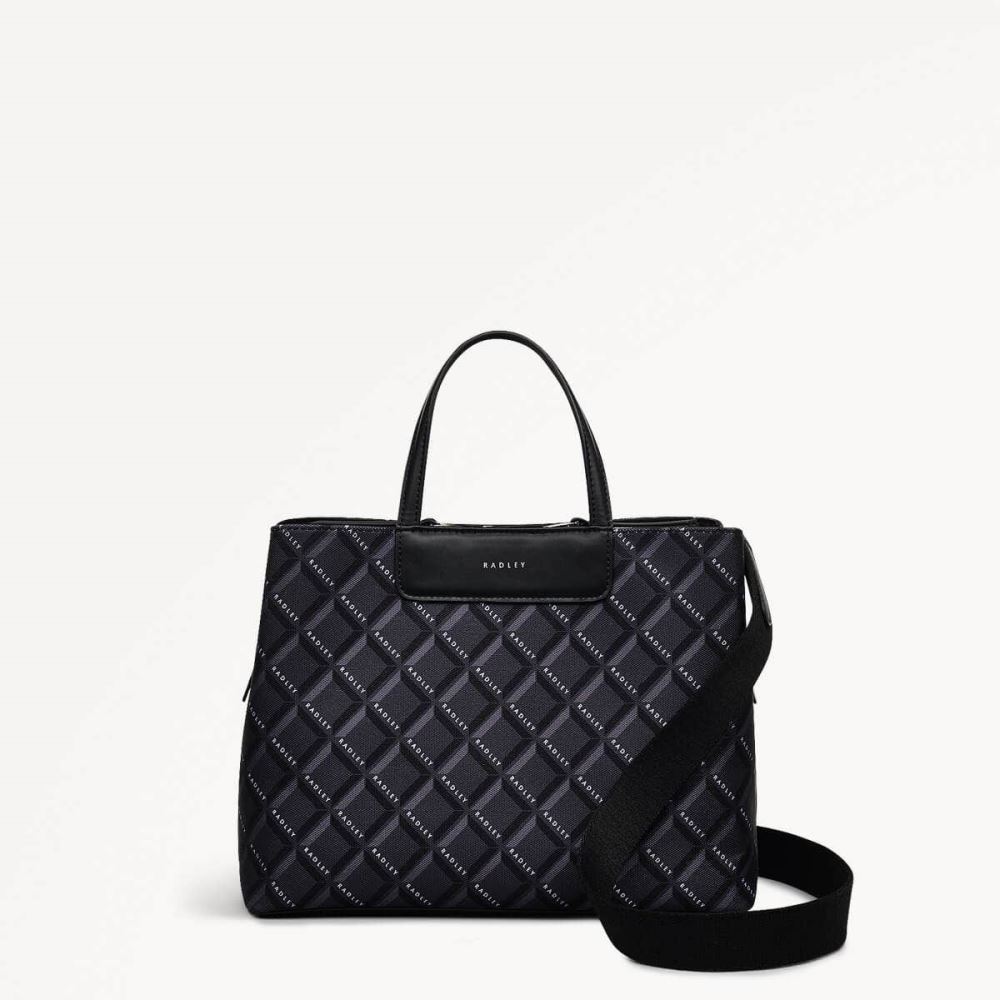 Made using recycled plastic bottles. Based on an already favoured shape, this Southwell Gardens grab bag is a sustainable choice for carrying your everyday essentials. Finished with a tonal, geometric print and our signature monogram.