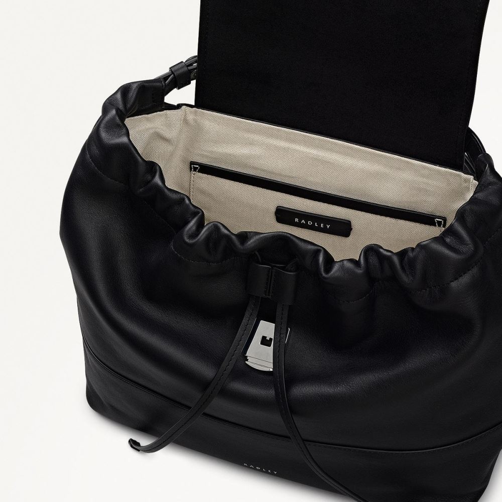 Supple leather and practicality come together across The Portobello backpack. This modern shape is made with thoughtful details such as adjustable straps and double the security thanks to the push - lock flap and supple drawstring fastening underneath.
