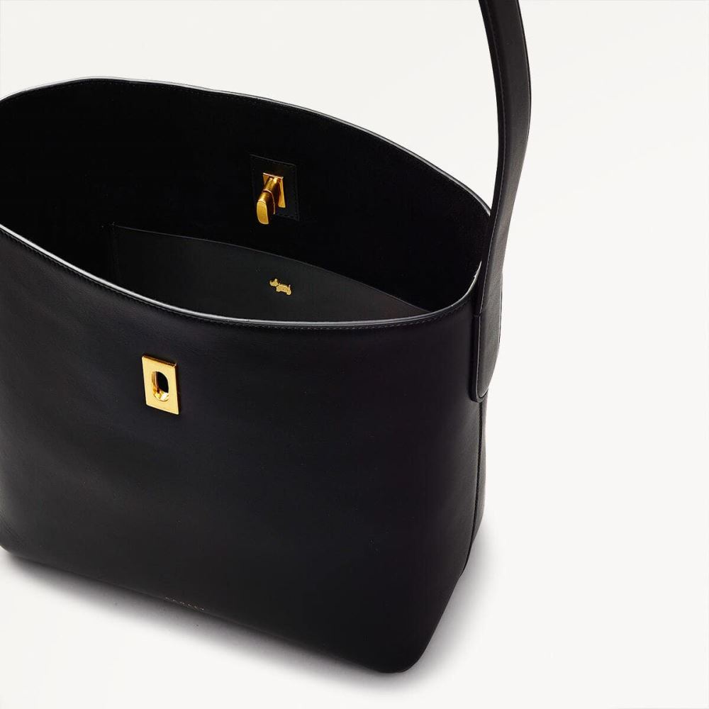 Our latest bucket bag, Threadneedle Street is a smart, timeless style made with sleek vegetable - tanned leather and brushed gold - tone hardware. We also love the padded, adjustable shoulder strap and bonded faux suede lining - luxurious final details.