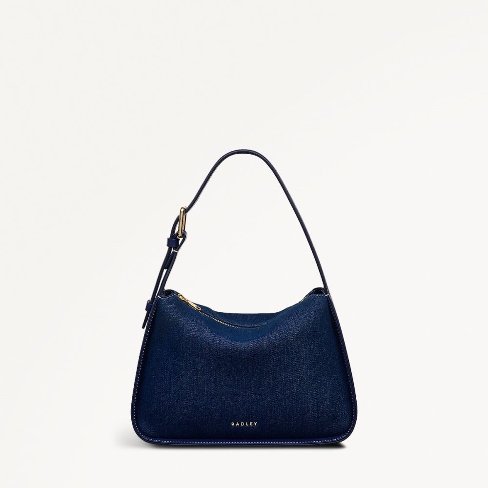 Westwell Lane becomes a must - have grab bag this season, one crafted with an Indigo - hued combination of denim and smooth leather. Replicating the same structured sides as the original, with new contrast stitching and flashes of high - shine hardware across the buckled handle and branded zip puller.