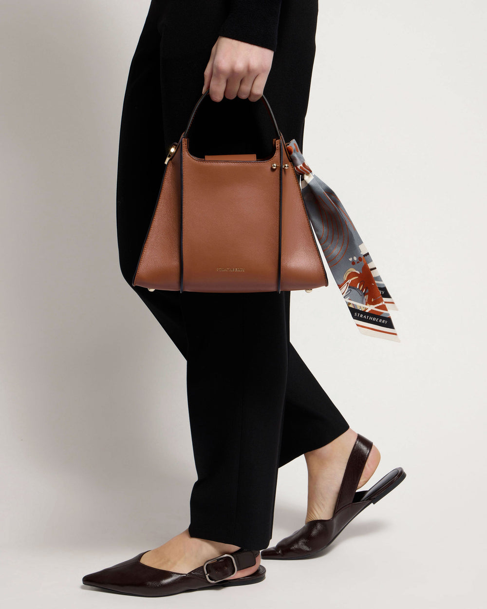Handcrafted in Spain100% Calf LeatherCotton twill liningGold hardwareSignature Music BarMagnetic closureLeather top-handleAdjustable leather strap includedComes with complimentary Silk Skinny ScarfProtective feetInterior slip pocket