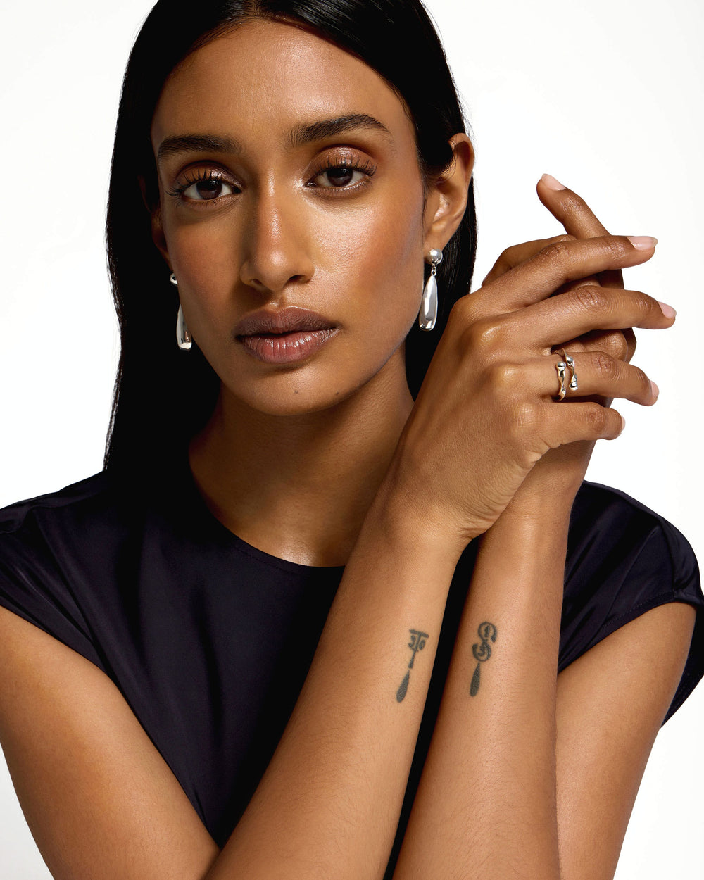 Showcasing a modern twist on a timeless accessory, the Crescent Twisted Ring features the iconic details from Strathberry's Crescent bar. This adjustable shining ring makes a statement on it's own, or paired with the Crescent Twisted Hoop earrings. A new capsule collection of our jewellery range is crafted in our home city of Edinburgh, Scotland. The collection has been crafted by historic jewellers,Hamilton and Inches, home to some of the world