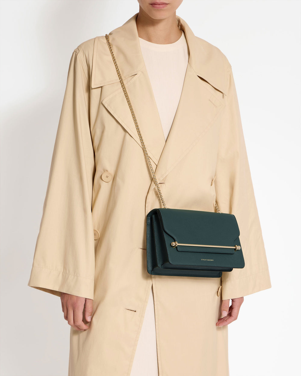 The East/West Bag blends timeless design with effortless versatility. Handcrafted in Spain from the finest materials, this structured silhouette features the iconic Strathberry Music Bar as a functional closure, bringing a touch of understated sophistication to any outfit. With its lightweight chain strap, adjustable to two lengths, the East/West transitions seamlessly from shoulder bag to crossbody—designed to complement your style from day to evening.