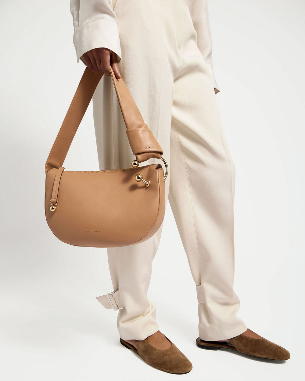 Designed to move with you, the Halo's half-moon silhouette transitions effortlessly from day to night. The soft, sculpted shape hugs close for comfort, while the reimagined Music Bar forms a continuous circle - a graceful 'halo' that symbolises harmony and unity.The bag's sculpted knotted strap detail reflects thoughtful craftsmanship and adapts perfectly to your needs. Whether carried by hand or worn as a shoulder bag, it