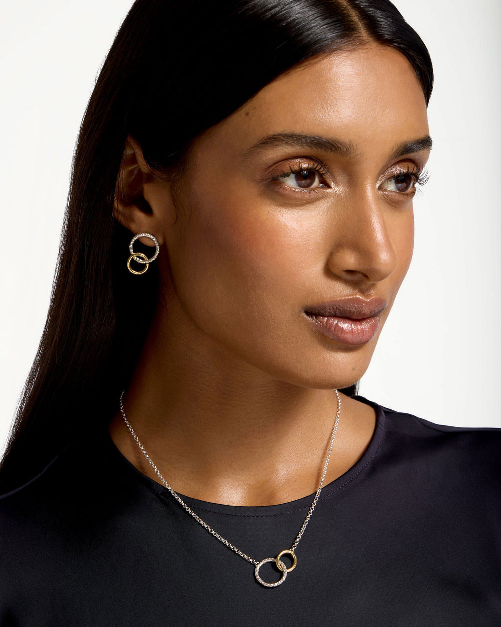 Featuring two contrasting rings, these shining earrings combine Gold and Silver, making the perfect choice for those who like to mix their metals and make a subtle statement. Simple yet sophisticated, this piece perfectly complements our Halo bracelet or necklace.A new capsule collection of our jewellery range is crafted in our home city of Edinburgh, Scotland. The collection has been crafted by historic jewellers,Hamilton and Inches, home to some of the world