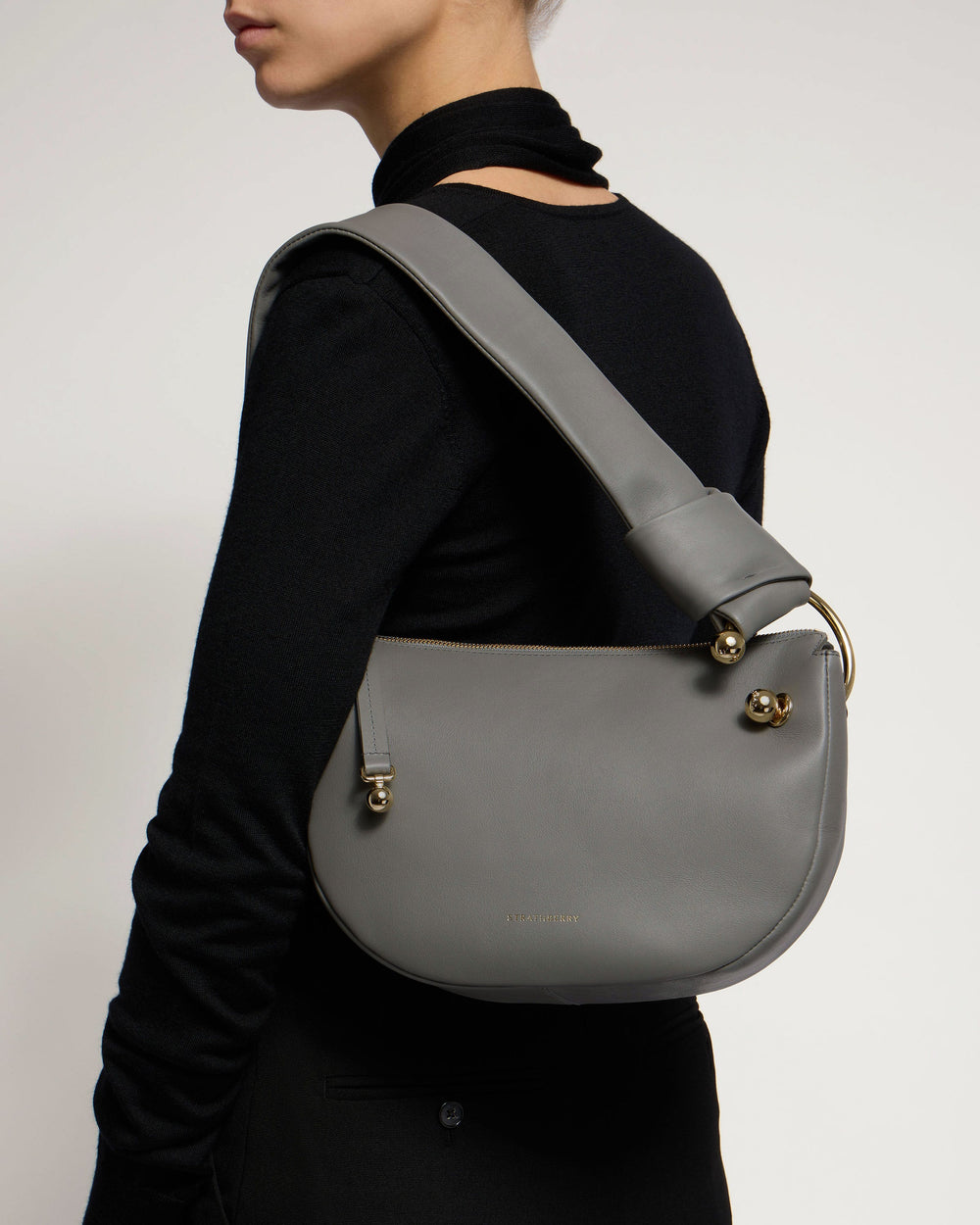 Designed to move with you, the Halo's half-moon silhouette transitions effortlessly from day to night. The soft, sculpted shape hugs close for comfort, while the reimagined Music Bar forms a continuous circle - a graceful 'halo' that symbolises harmony and unity.The bag's sculpted knotted strap detail reflects thoughtful craftsmanship and adapts perfectly to your needs. Whether carried by hand or worn as a shoulder bag, it