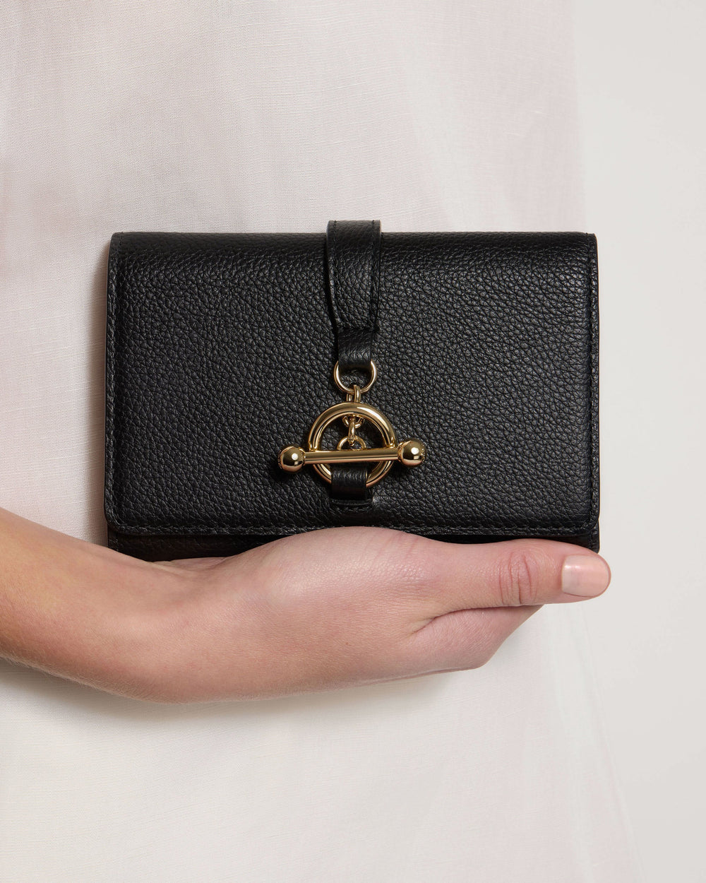 Inspired by the graceful freedom of dance, the Kite Family is designed to move effortlessly with you. Our Kite Medium Trifold Wallet pairs with the bag silhouette, mimicking the jewellery-inspired hardware and closed with a magnetic clasp. Multiple card slots and mini compartments keep your money safely enclosed.
