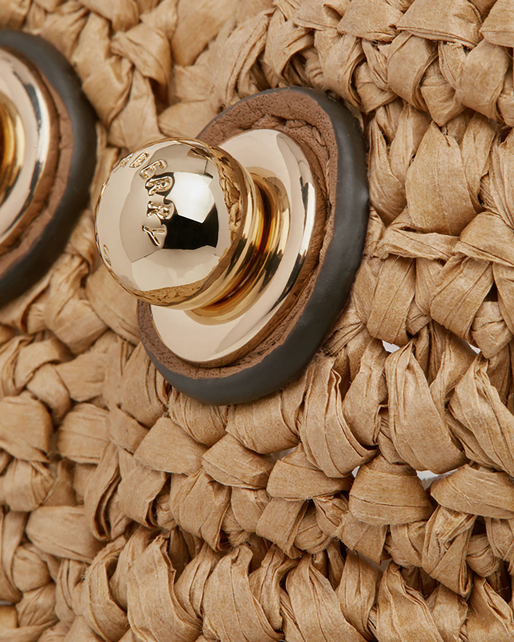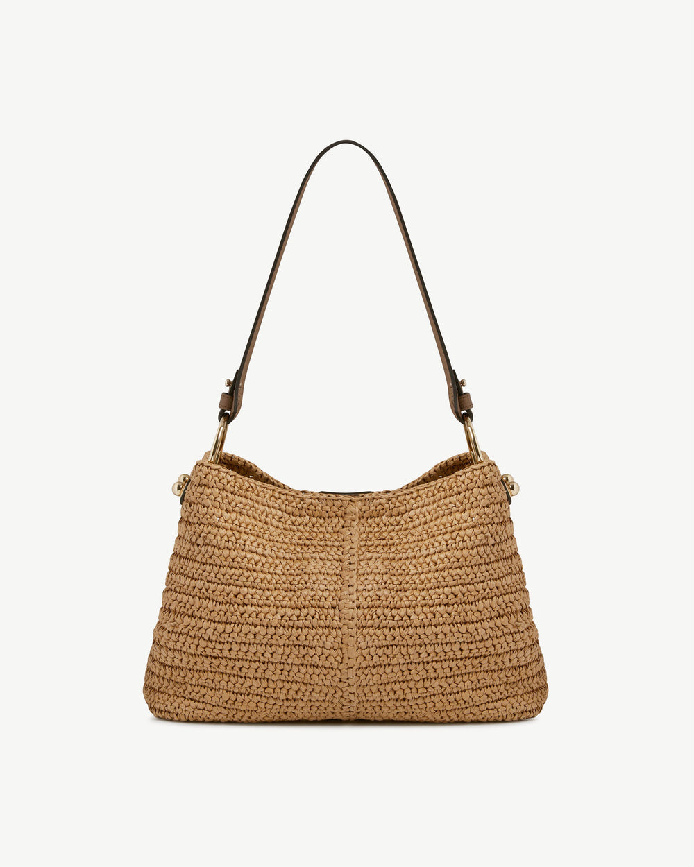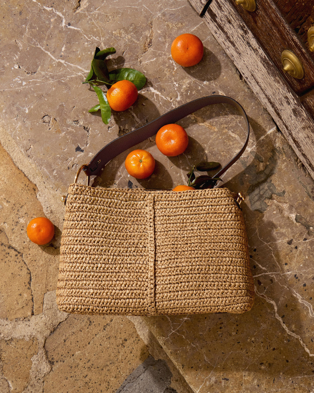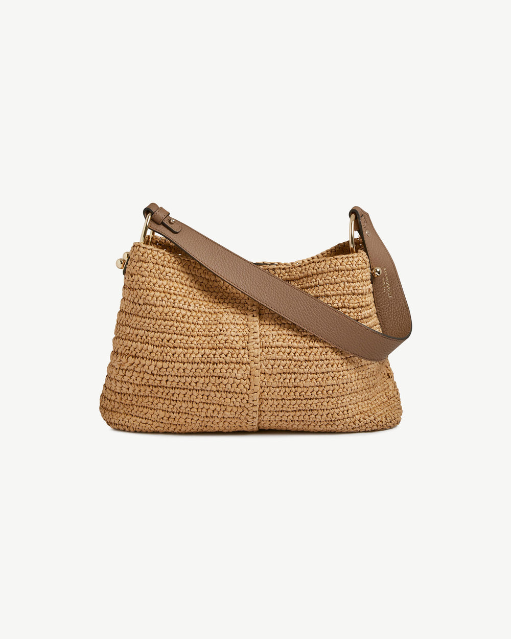 Handcrafted in Spain100% RaffiaGold hardwareLeather shoulder strapMagnetic closureInterior zipped pocketInterior leather base