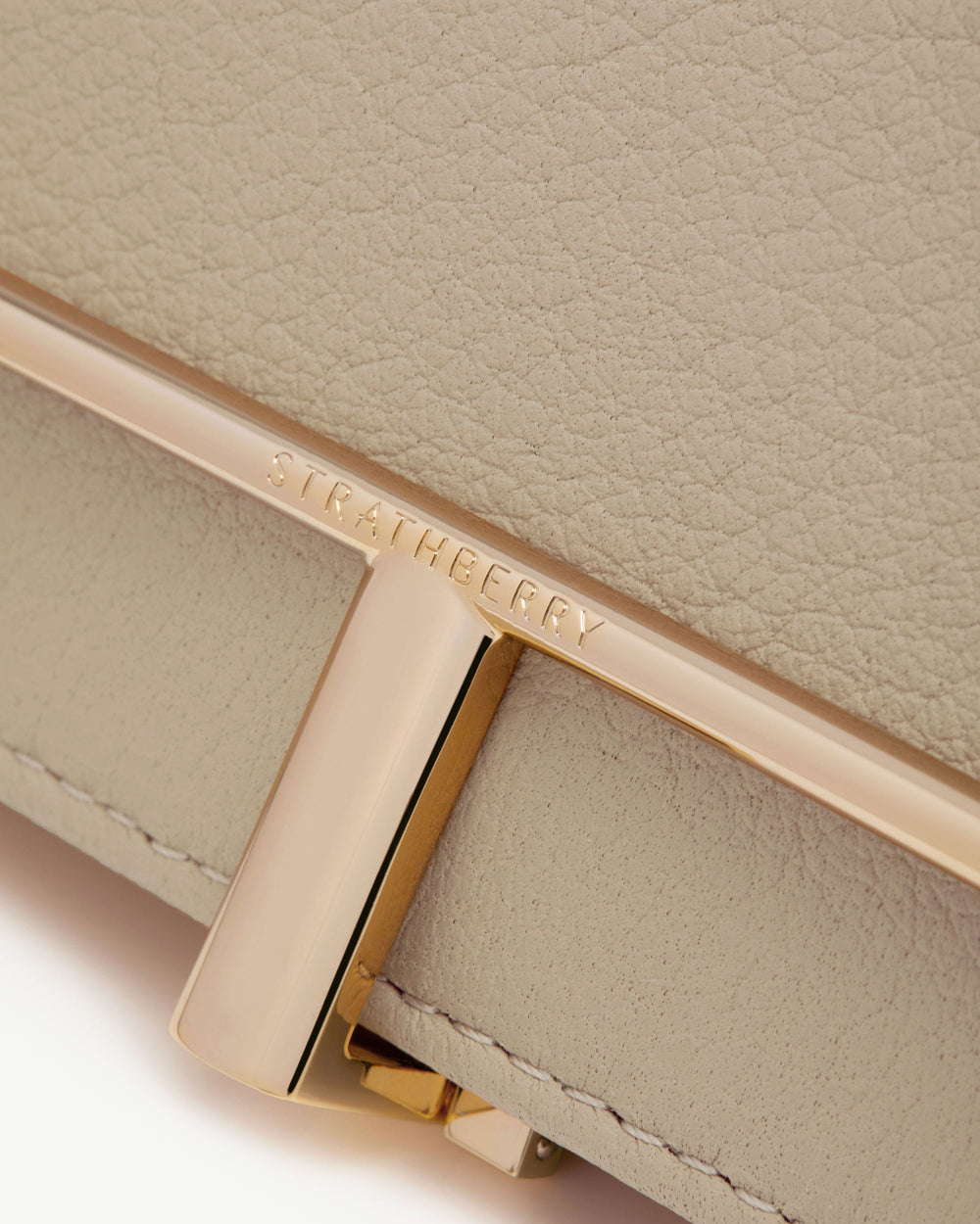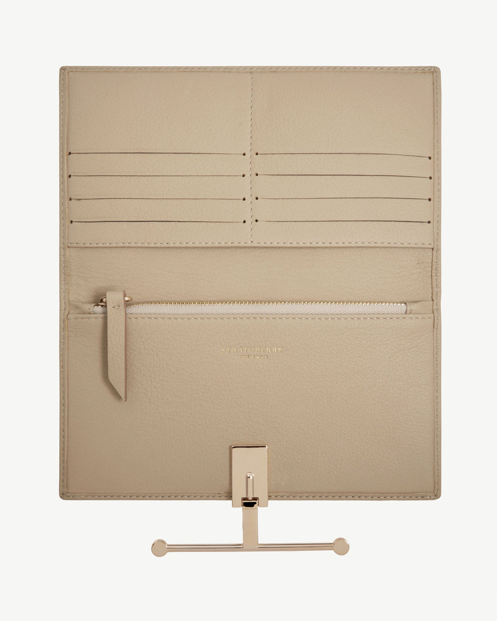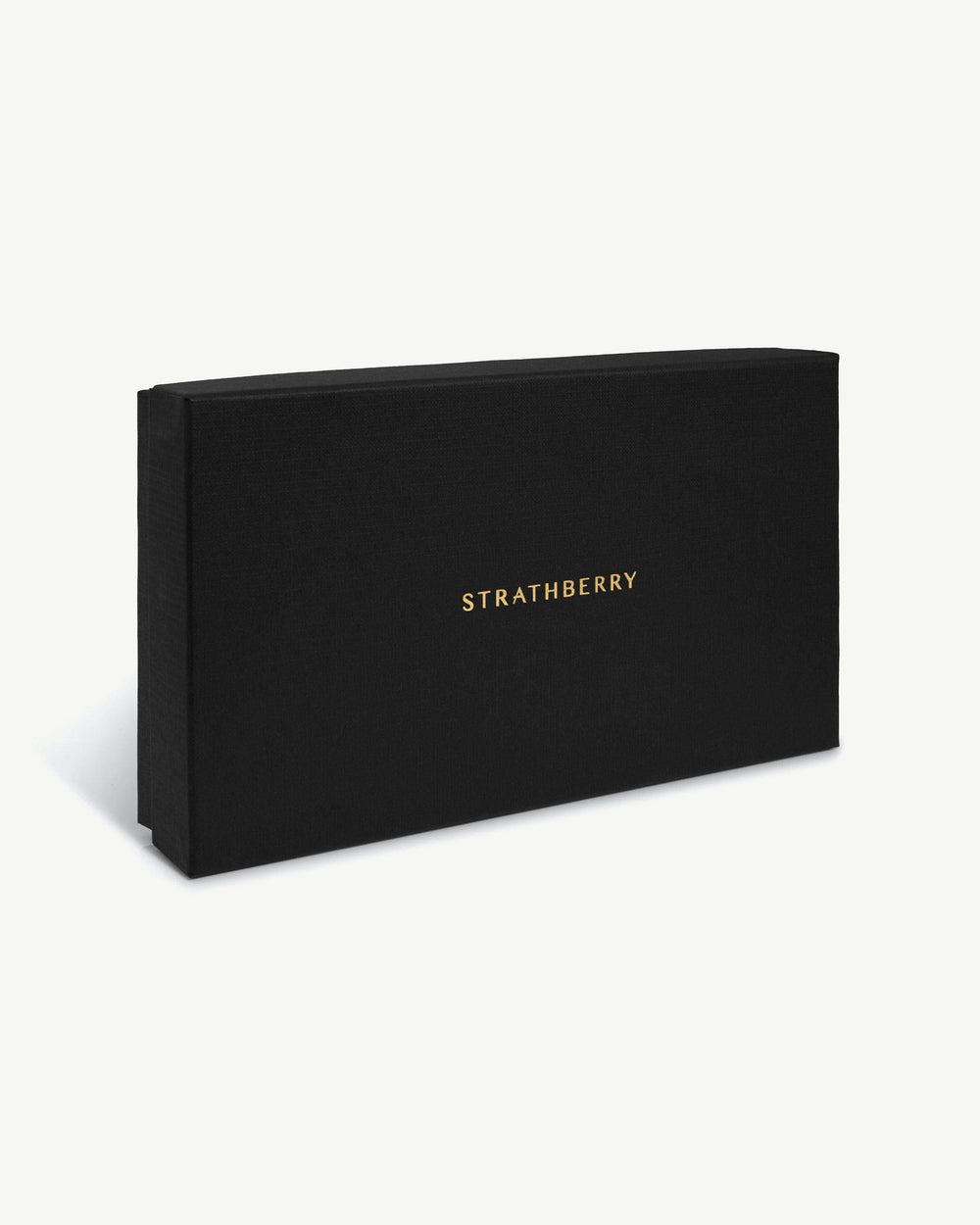 A true statement piece, the Large Melville Street Wallet features the instantly recognizable signature Strathberry bar, which functions as a secure lock. Handcrafted in Spain from smooth calf leather to a rectangular shape, it unfolds to reveal two flat interior compartments, eight card slots, and a zipped coin pocket with a leather pull.