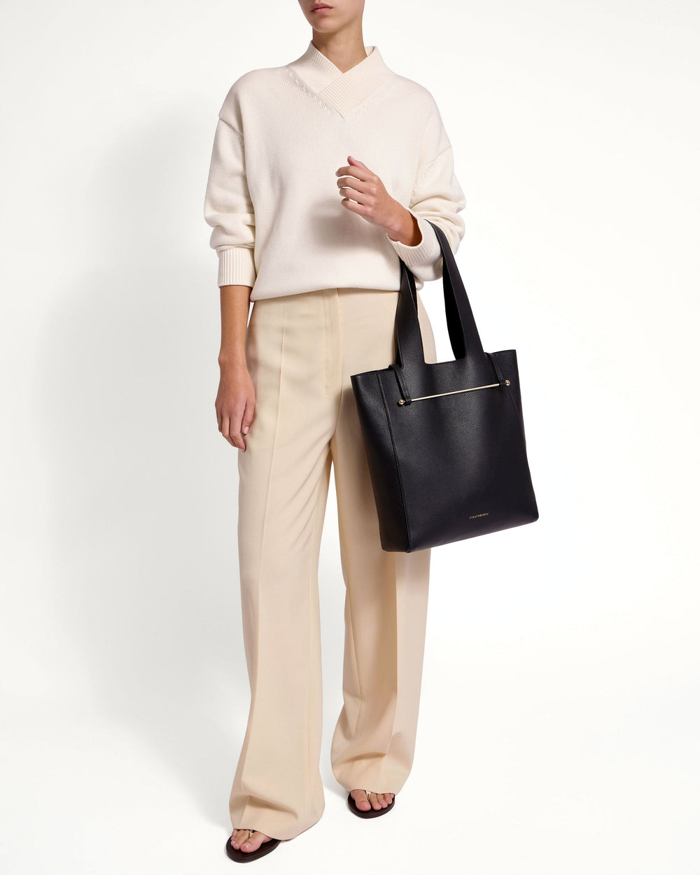 An exaggerated silhouette meets timeless elegance in the Melody Tote, reimagining the vintage music folio that inspired Strathberry
