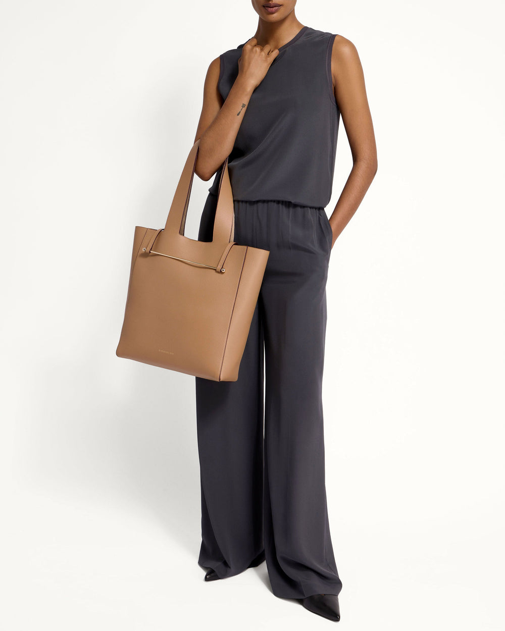 An exaggerated silhouette meets timeless elegance in the Melody Tote, reimagining the vintage music folio that inspired Strathberry