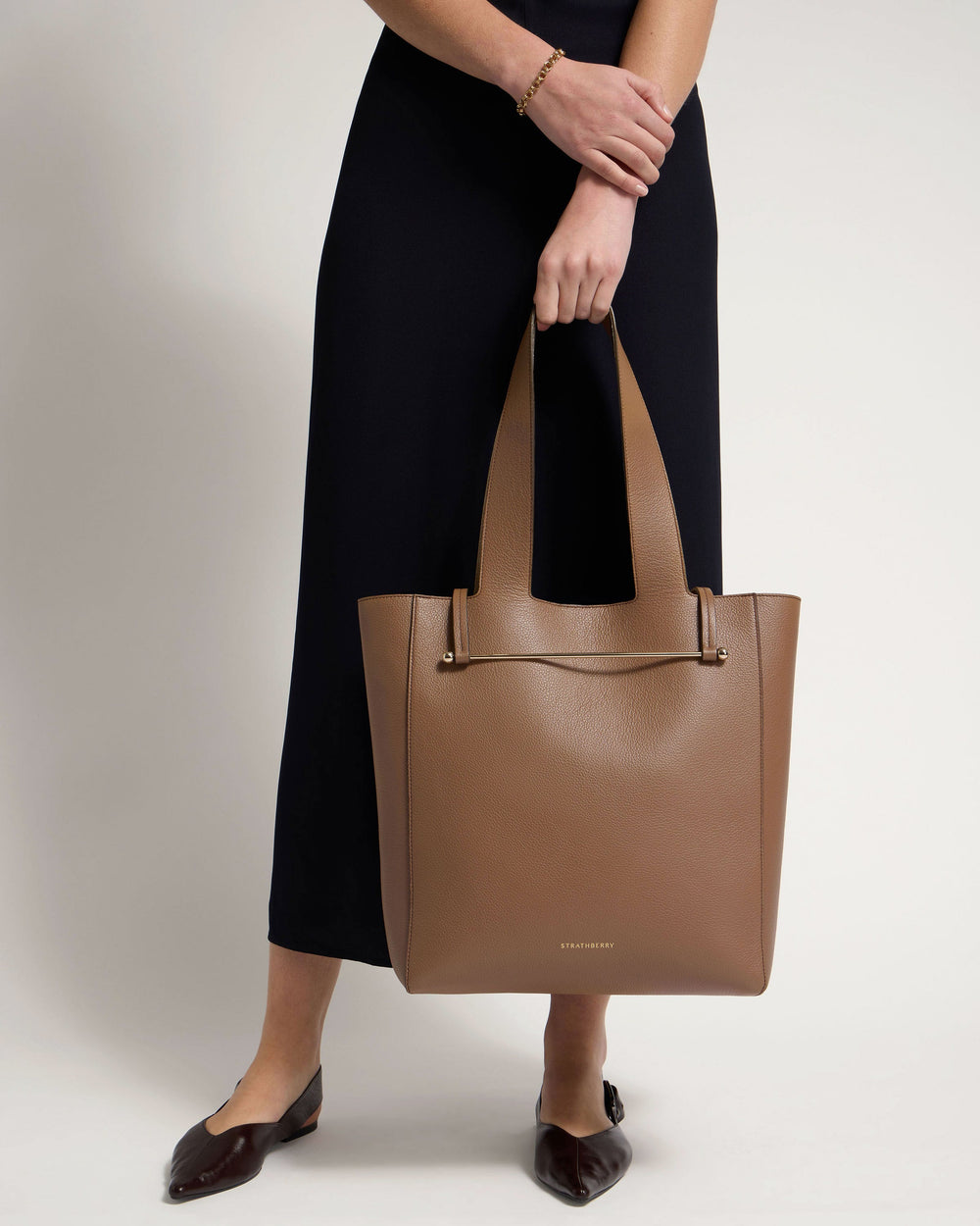 An exaggerated silhouette meets timeless elegance in the Melody Tote, reimagining the vintage music folio that inspired Strathberry’s signature music bar. Spacious and practical, it’s perfect for carrying life’s essentials—work notes, weekend plans, and everything in between. Crafted in embossed leather, its floating music bar adds a relaxed yet refined touch, while a detachable zip pouch keeps valuables secure, letting you move through your day with ease.