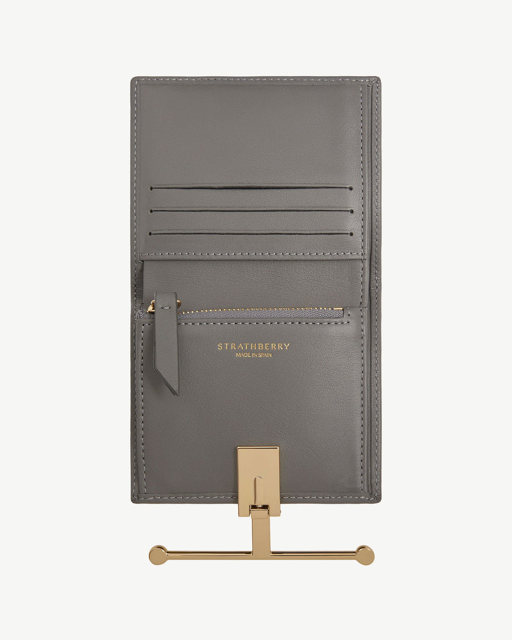 A true statement piece, the Melville Street Wallet features the instantly recognisable signature Strathberry bar, which functions as a secure lock. Handcrafted in Spain from smooth calf leather to a compact square dimension, it unfolds to reveal three card slots and a zipped coin pocket with a leather pull.