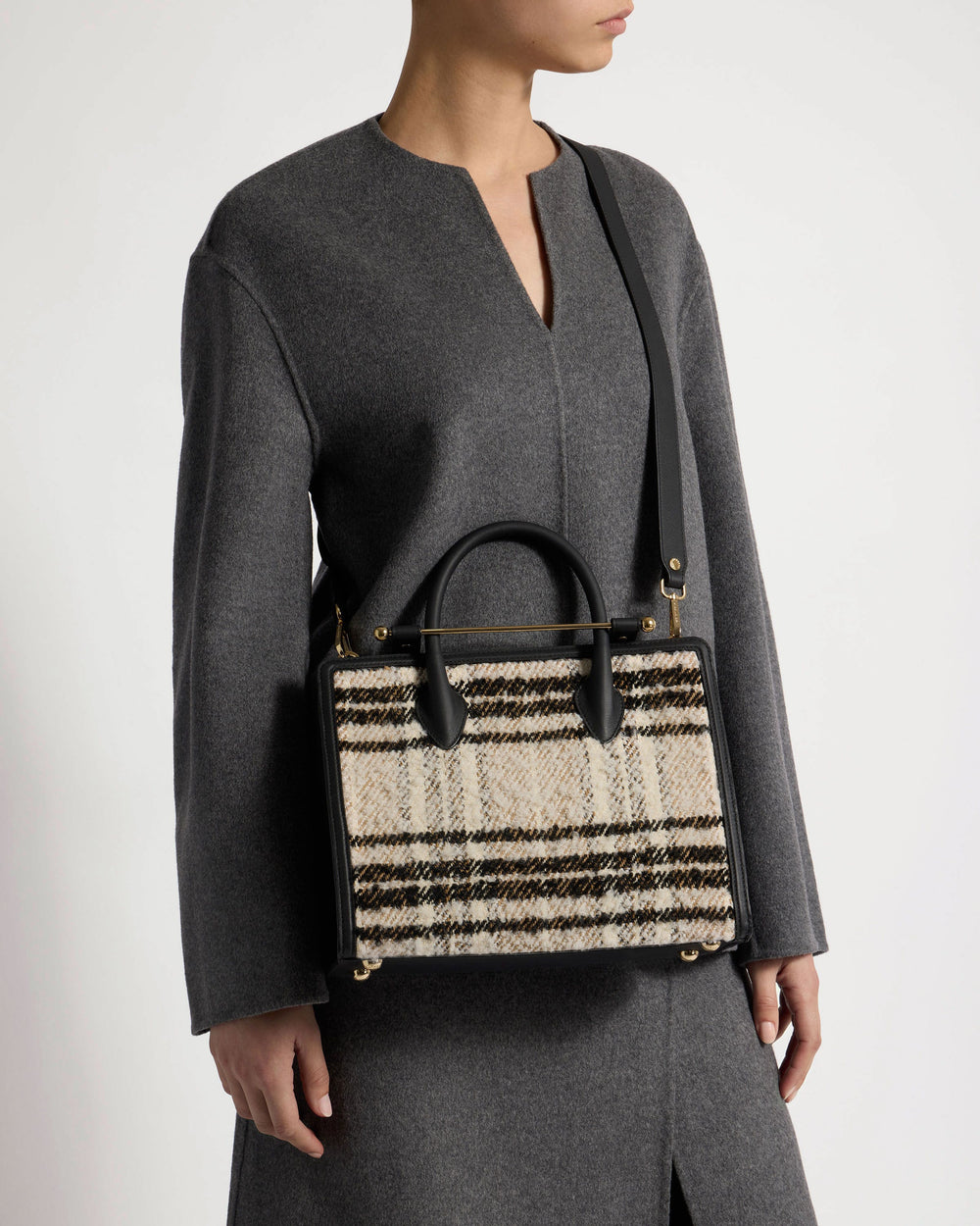 Wrap yourself in the warm embrace of our Tartan collection, a harmonious blend of comfort and heritage. Our bouclé fabric weaves two yarns together creating a looped, tactile finish, to refresh the pattern for the season whilst paying homage to Strathberry's Scottish roots.