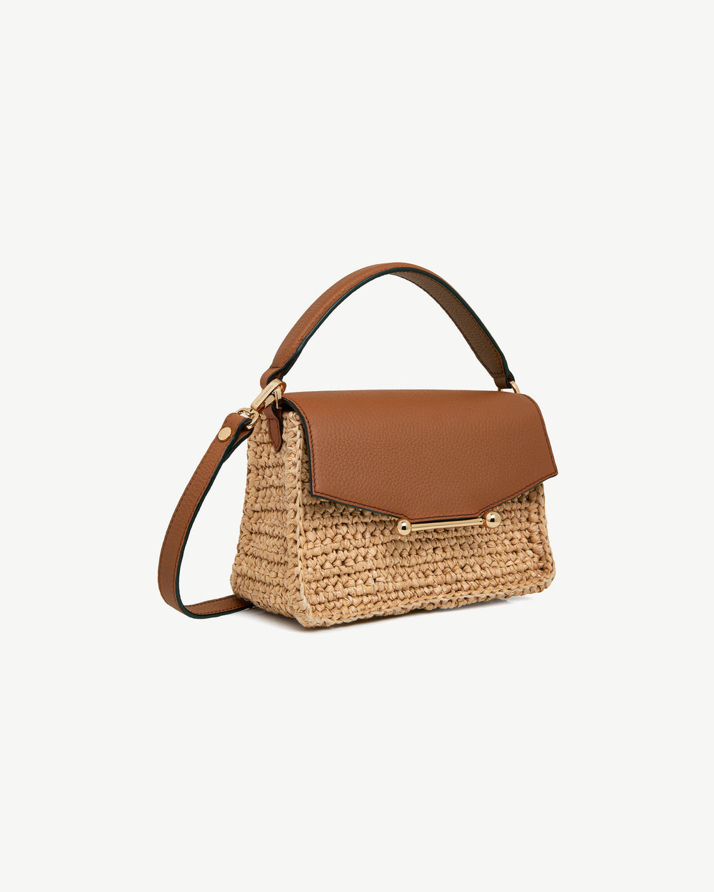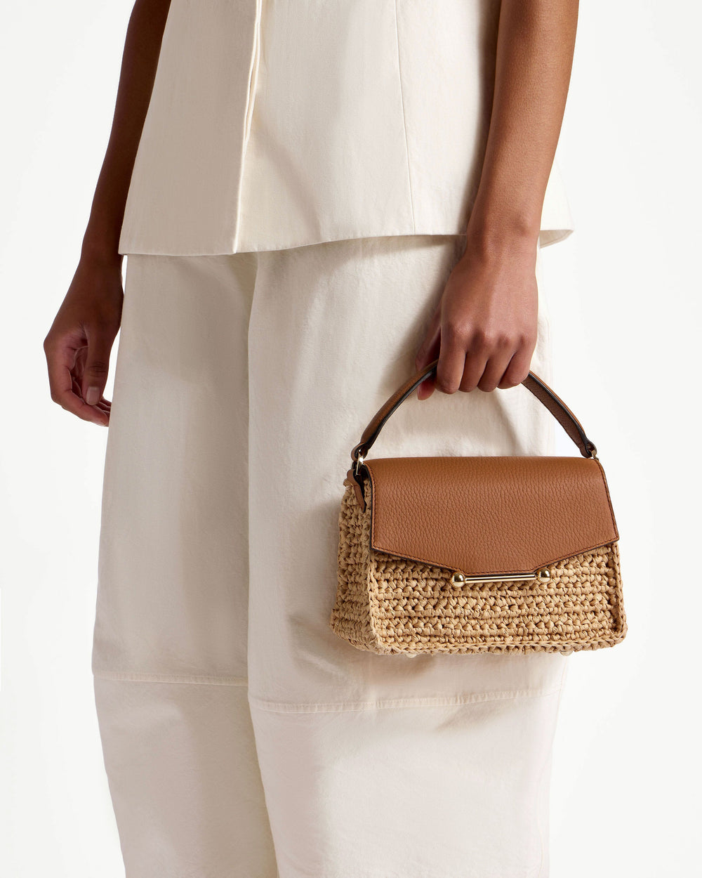 Elevate your style with the natural texture of raffia, seamlessly married with luxurious leather in a timeless tan. A fresh interpretation of our much loved Mosaic Nano brimming with relaxed summertime allure.