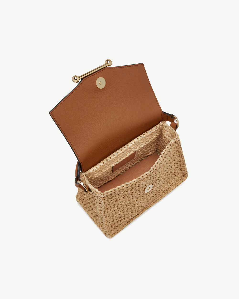 Elevate your style with the natural texture of raffia, seamlessly married with luxurious leather in a timeless tan. A fresh interpretation of our much loved Mosaic Nano brimming with relaxed summertime allure.