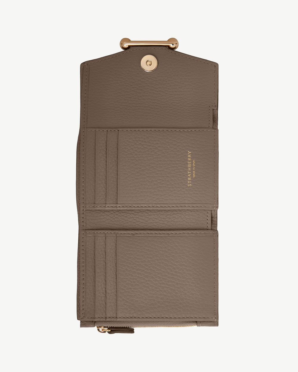 The perfect companion to our Mosaic family, the Mosaic Trifold Wallet is handcrafted from the highest quality soft grain leather and features the instantly recognisable signature Strathberry bar. A masterpiece of clean and precise lines, this wallet unfolds to reveal ample storage for cash and cards, with 6 card slots, a zipped coin pouch, and a slip compartment for notes.