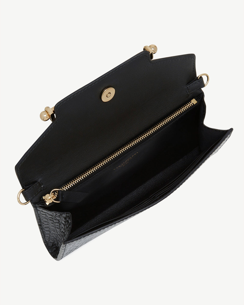 Understated and elegant, our best-selling Multrees Chain Wallet is the perfect day-to-evening companion. Handcrafted in Spain, this versatile purse can also be carried as a timeless clutch or transformed into a crossbody bag with its removable gold chain strap. The magnetic closure, decorated with our signature Strathberry music bar, keeps your essentials secure and opens to reveal a surprisingly spacious interior - featuring 8 card slots and a zipped pocket with a leather pull.