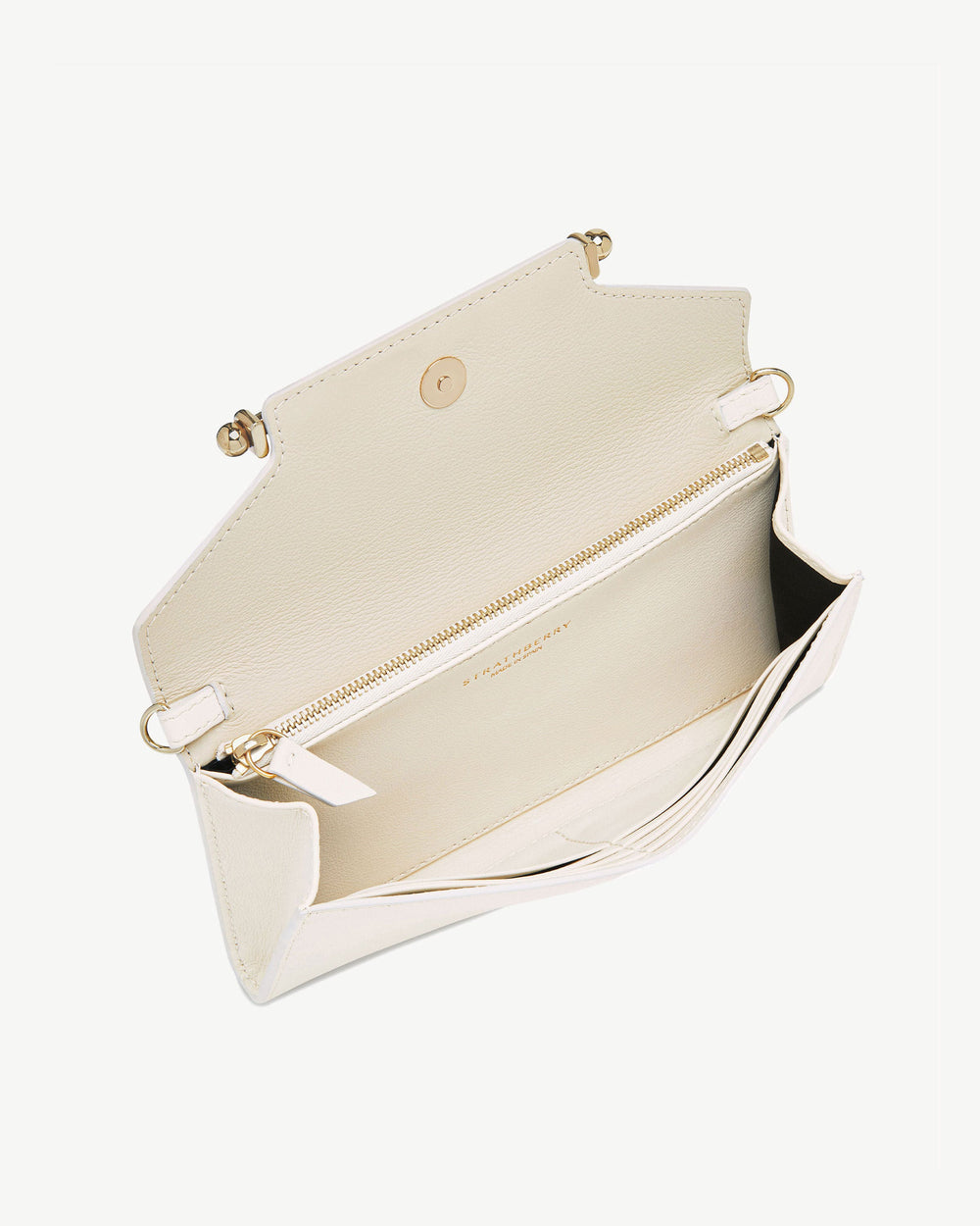 Effortlessly versatile, the Multrees Chain Wallet transitions seamlessly from day to evening. Handcrafted in Spain, it can be carried as a timeless clutch or worn as a crossbody bag with its removable gold chain strap.The magnetic closure, adorned with Strathberry