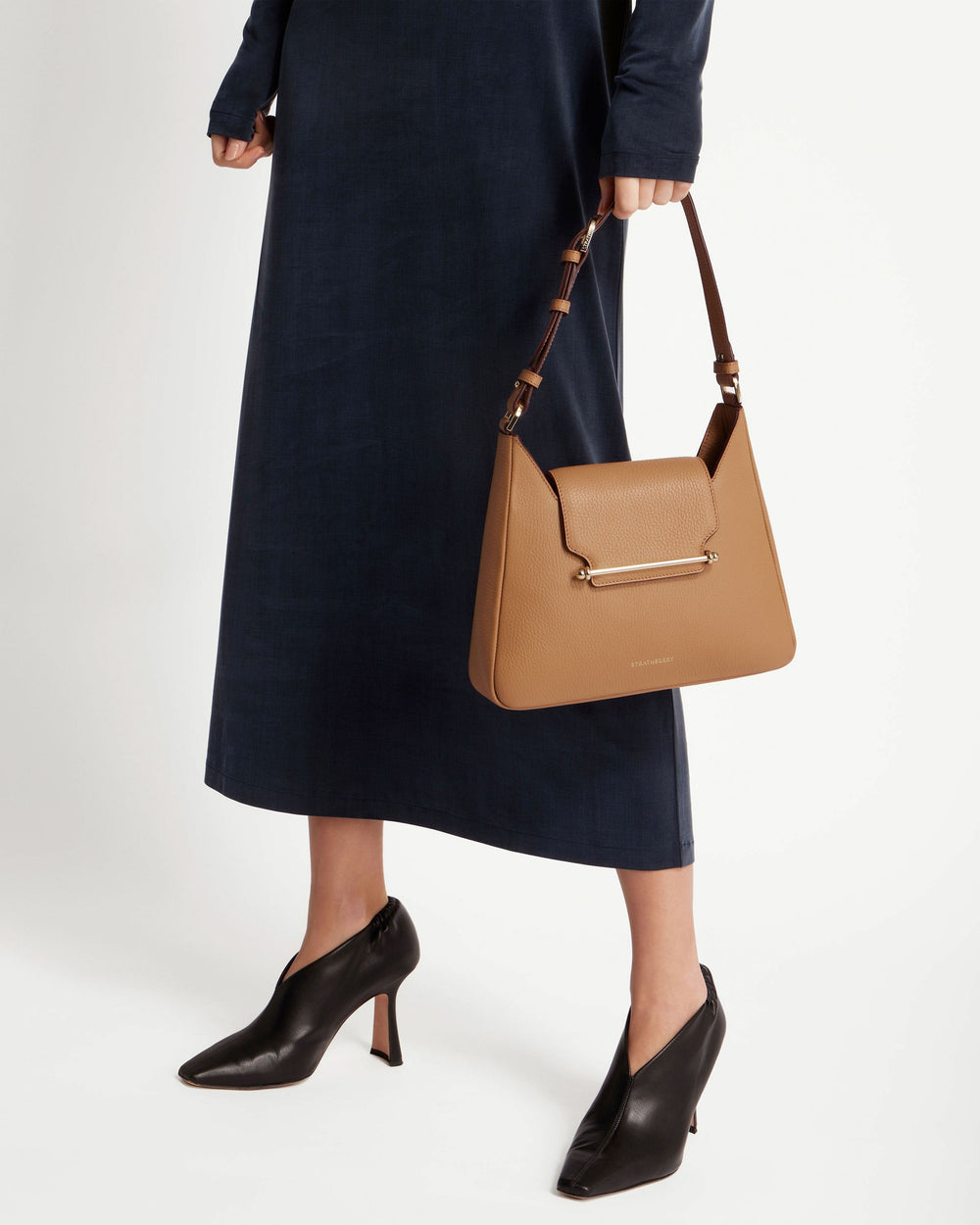 The Multrees Hobo joins the collection as a casual chic and functional silhouette, perfect for everyday wear. Designed with practicality and versatility in mind, this slouchy shoulder bag comes with an additional leather strap, turning into an effortlessly cool crossbody. The signature bar securing the flap adds the instantly recognisable Strathberry touch to this contemporary silhouette.