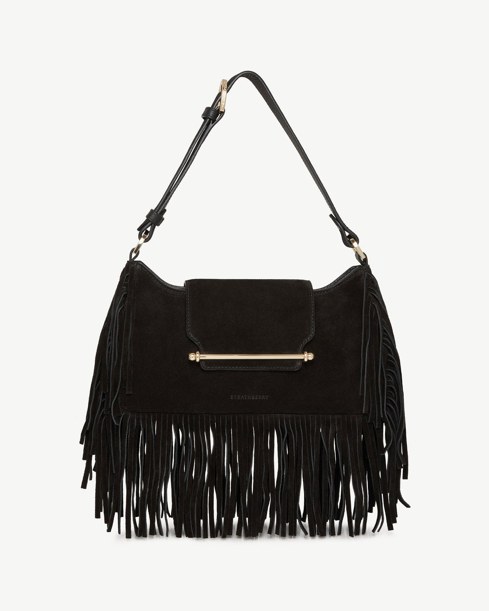 Casually cool and perfectly polished, our best-selling shoulder bag is re-imagined with a limited edition fringing technique. With a tactile suede design inspired by the romance of the American Prairie, the Suede fringing embodies soft movements of a gentle breeze gliding through the grass. Our leather artisans shape each fringe with a cutting die to maintain the highest quality in every detail.