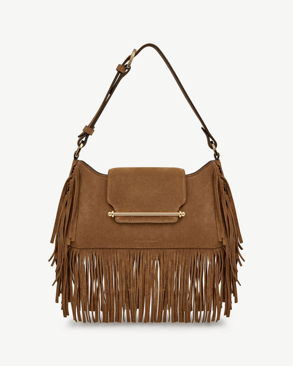 Casually cool and perfectly polished, our best-selling shoulder bag is re-imagined with a limited edition fringing technique. With a tactile suede design inspired by the romance of the American Prairie, the Suede fringing embodies soft movements of a gentle breeze gliding through the grass. Our leather artisans shape each fringe with a cutting die to maintain the highest quality in every detail.