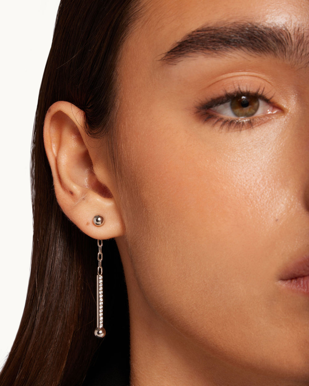 Reimagined for the season, our versatile Music Bar Earrings offer two ways to wear. Handcrafted in Italy, these delicate brass earrings can be worn either as an elegant drop earring, or as a simple stud. Designed to be treasured for years to come, these crystal detailed earrings are the perfect accessory for day-to-evening wear.