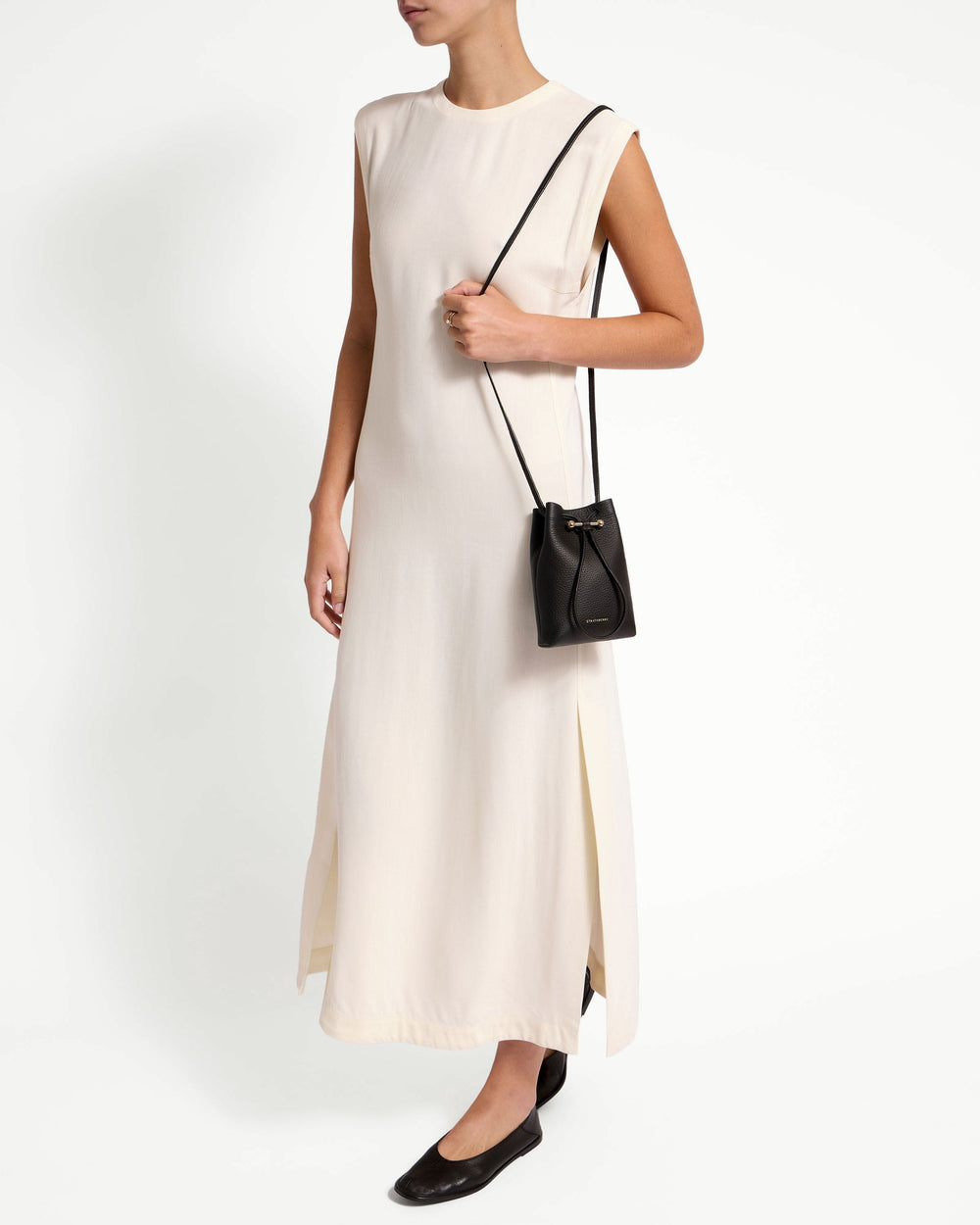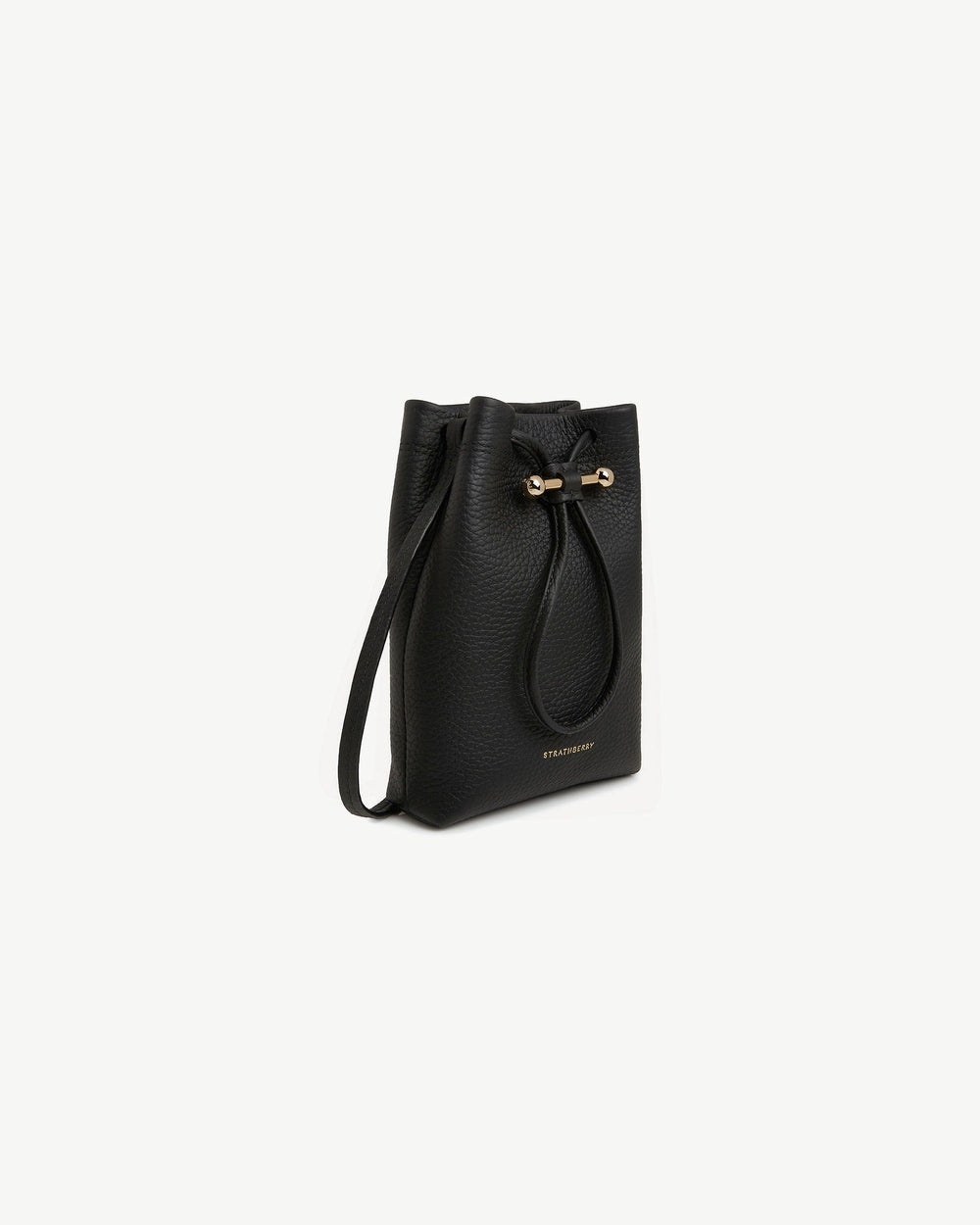 Handcrafted in Spain100% Grain calf leatherSoft microfibre liningGold hardwareSignature barDrawstring closureLong Leather Strap
