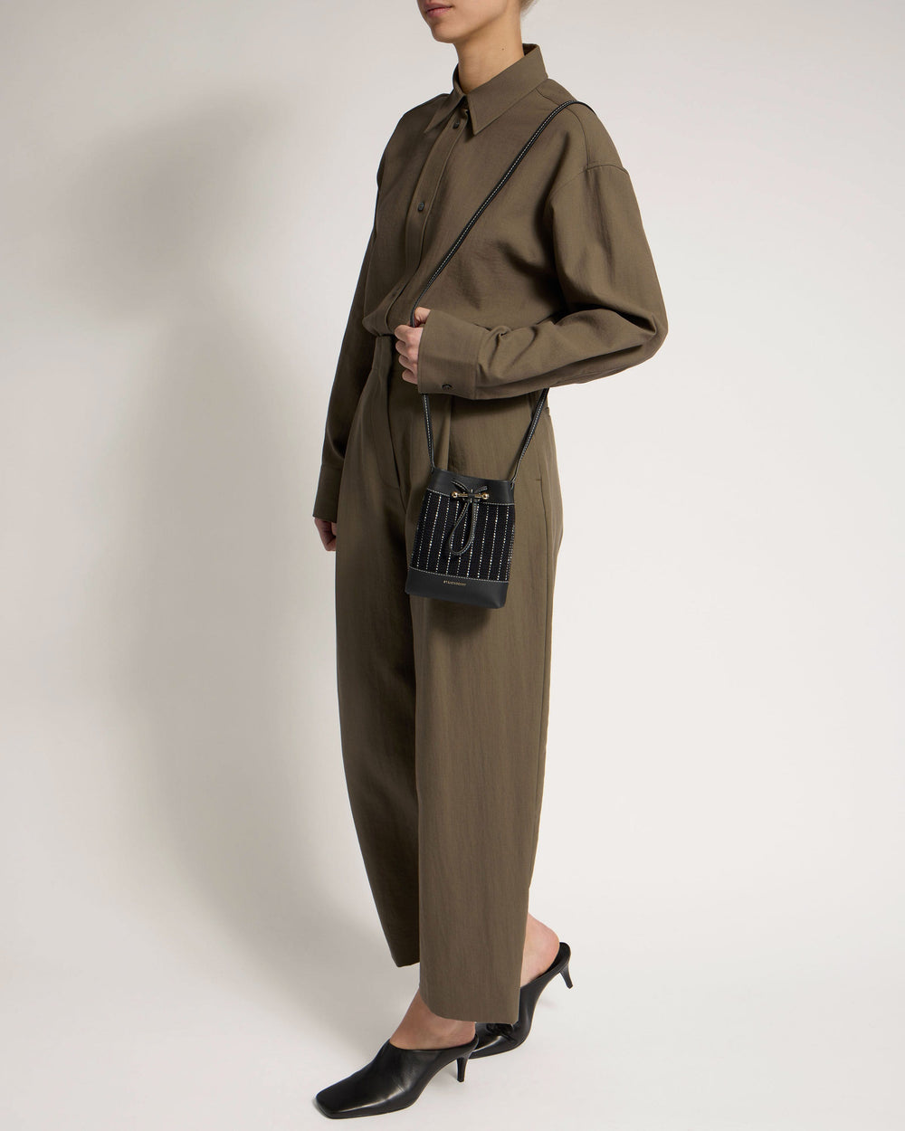 Compact style, crafted for ease. The Osette Pouch combines sleek design with soft structure, making it the perfect companion for your essentials. Finished with Strathberry’s signature Music Bar and a drawstring closure, this versatile piece can be worn crossbody or over the shoulder with its thin leather strap—ideal for life on the move.