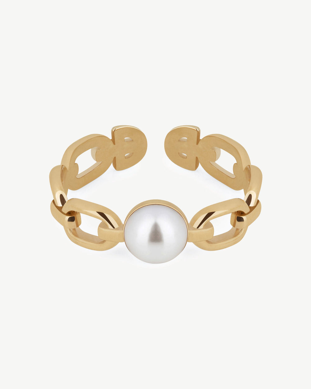 For those who love statement jewellery, the Pearl Link Ring will add the perfect finishing touch. Interlinking gilded gold chains surround a single pearl, which fits adjustably around the finger. Pair with our Pearl Link Necklace for a cohesive finish.