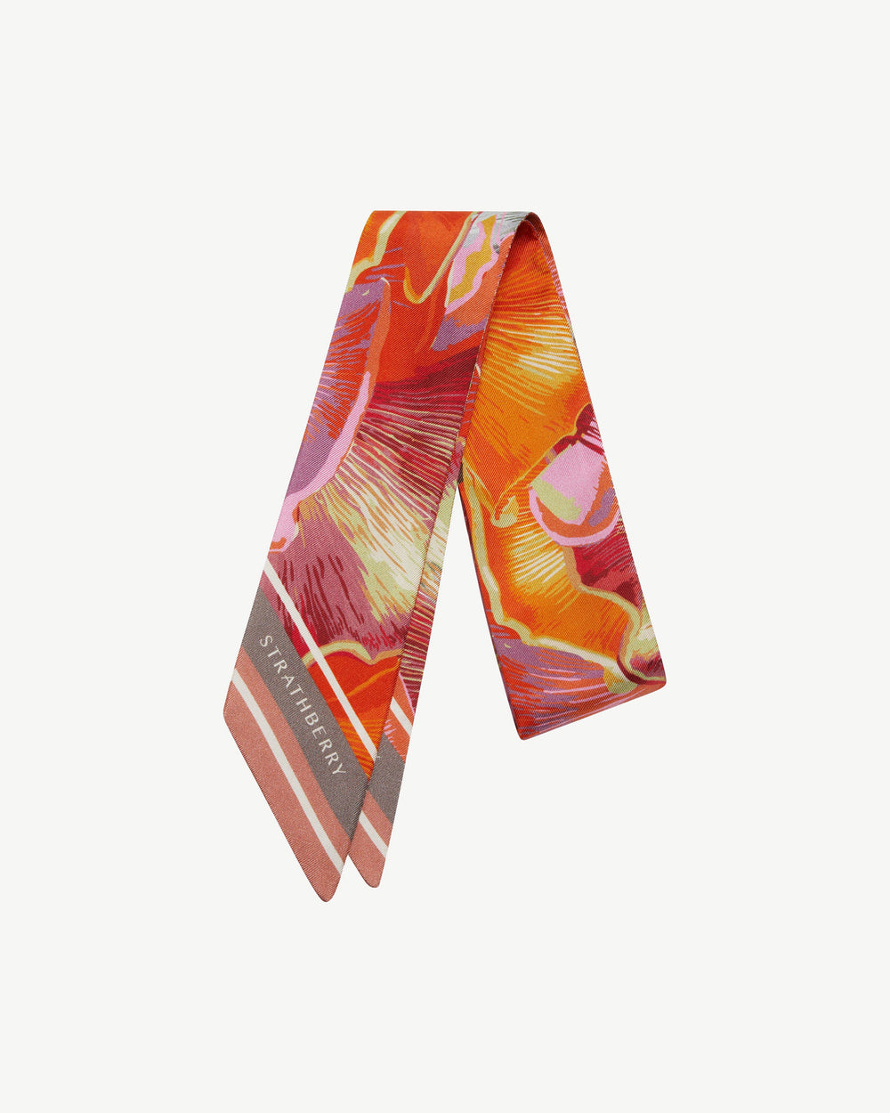 Crafted from exquisite silk, the Strathberry Silk Skinny Scarf is perfect for adding a touch of personality to any look. This versatile piece can be worn around the neck or in the hair. Alternatively, it can be looped around the handle of a handbag for a contemporary finish. Made in Italy from 100% silk.