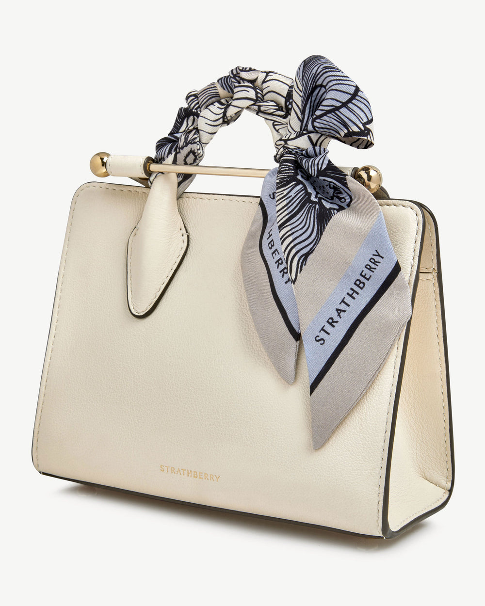 • Strathberry Canada Outlet Women's Silk Skinny Scarf - White / Blue