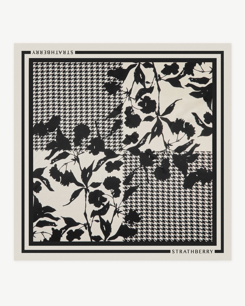• Strathberry Canada Outlet Women's Silk Square Scarf - Black / White