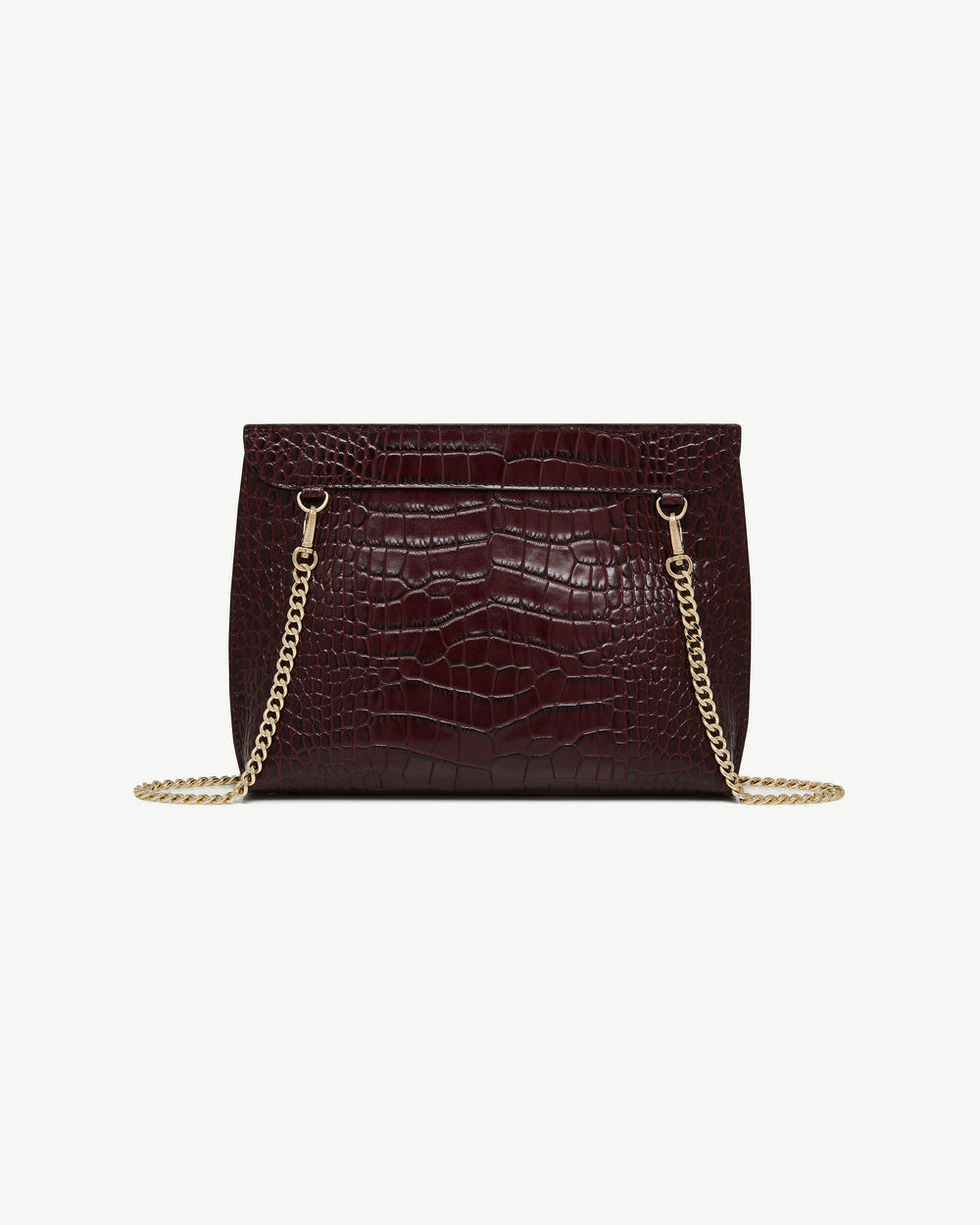 Handcrafted in Spain100% Croc-embossed calf leatherSoft microfibre liningGold hardwareSignature barDetachable chain with leather insert